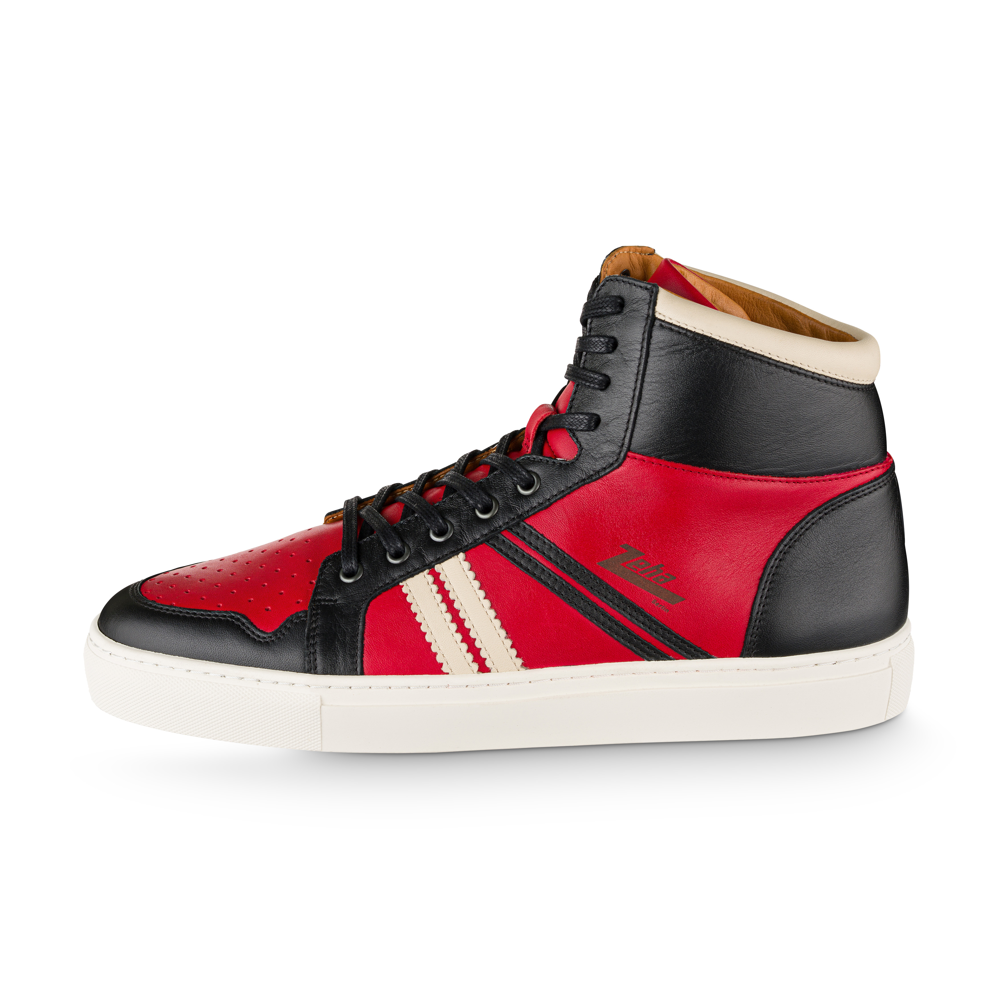Basketballer Ledersneaker Kalbsleder rot / schwarz