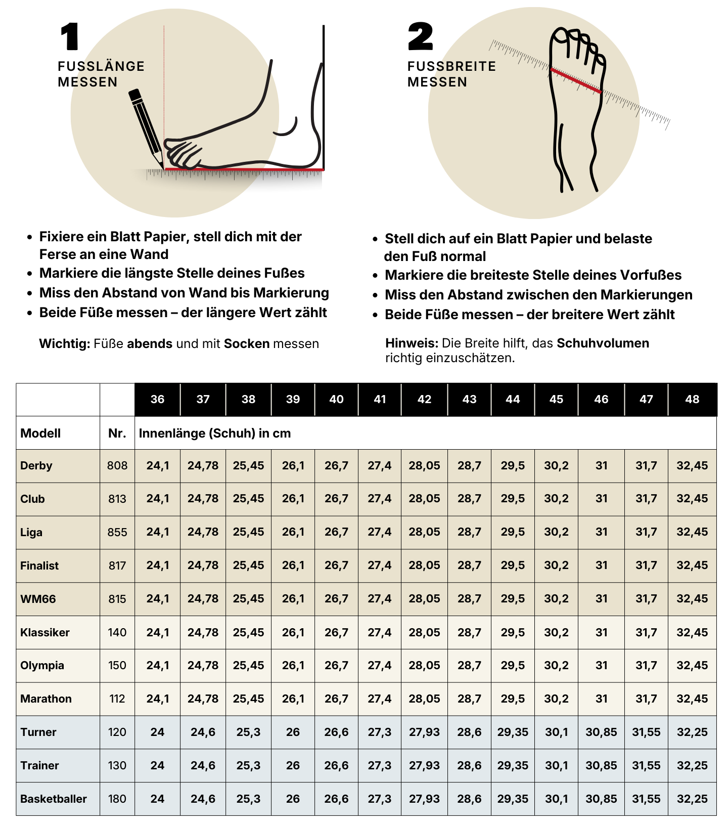 Fußgrößenbestimmung
