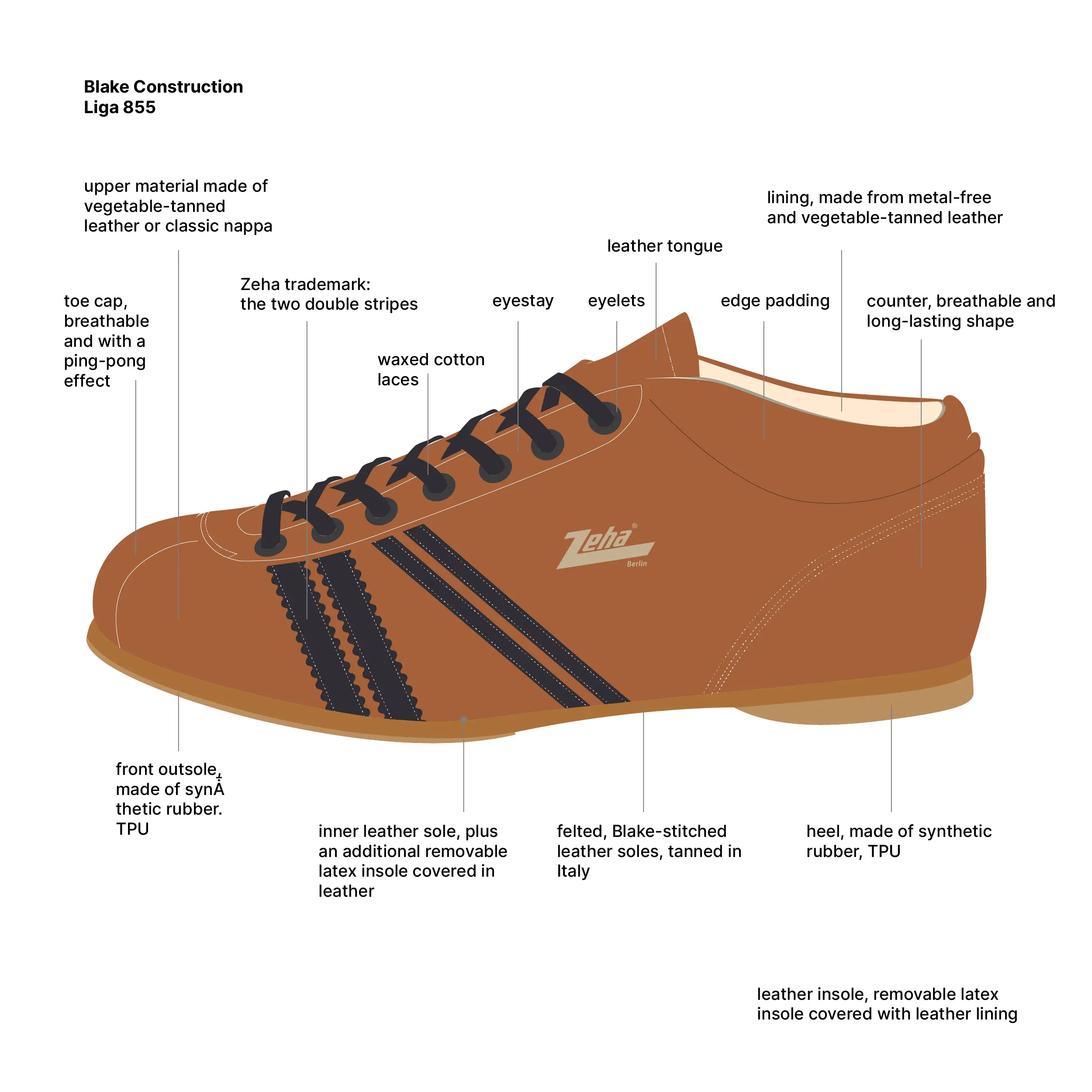 Zeha Berlin Schuhe werden aus hochwertigem Material hergestellt. Damit Sie lange Freude an Ihren neuen Schuhen haben, liegen jedem Schuhkarton Pflegehinweise bei. Bitte lesen Sie diese aufmerksam durch. Reklamationen, die durch eine nicht ordnungsgemäße Pflege des Materials entstehen, können nicht anerkannt werden.